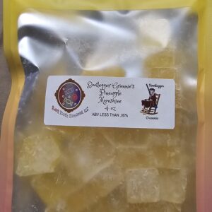 Bootlegger Grannie’s Pineapple Upside-Down Cake Moonshine Hardtack Candy is a bold Southern indulgence with roots in Suffolk, VA. Inspired by a porch-cooling classic, this handcrafted hardtack delivers rich, buttery cake notes swirled with caramelized brown sugar and bright cherry—then kicks it up with a smooth moonshine finish.