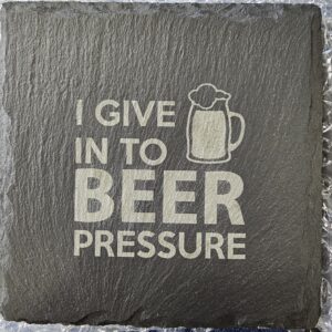 I guve into beer pressure Slate Coaster. Laser engraved and forever visible.