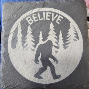 Believe bigfoot Slate Coaster. Laser engraved and forever visible.