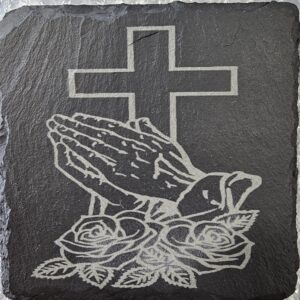 Praying hands Slate Coaster. Laser engraved and forever visible.