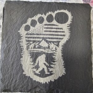 Bigfoot foot print Slate Coaster. Laser engraved and forever visible.