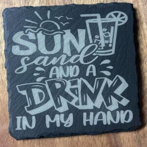 Sun, sand, drink in my hand Slate Coaster. Laser engraved and forever visible.