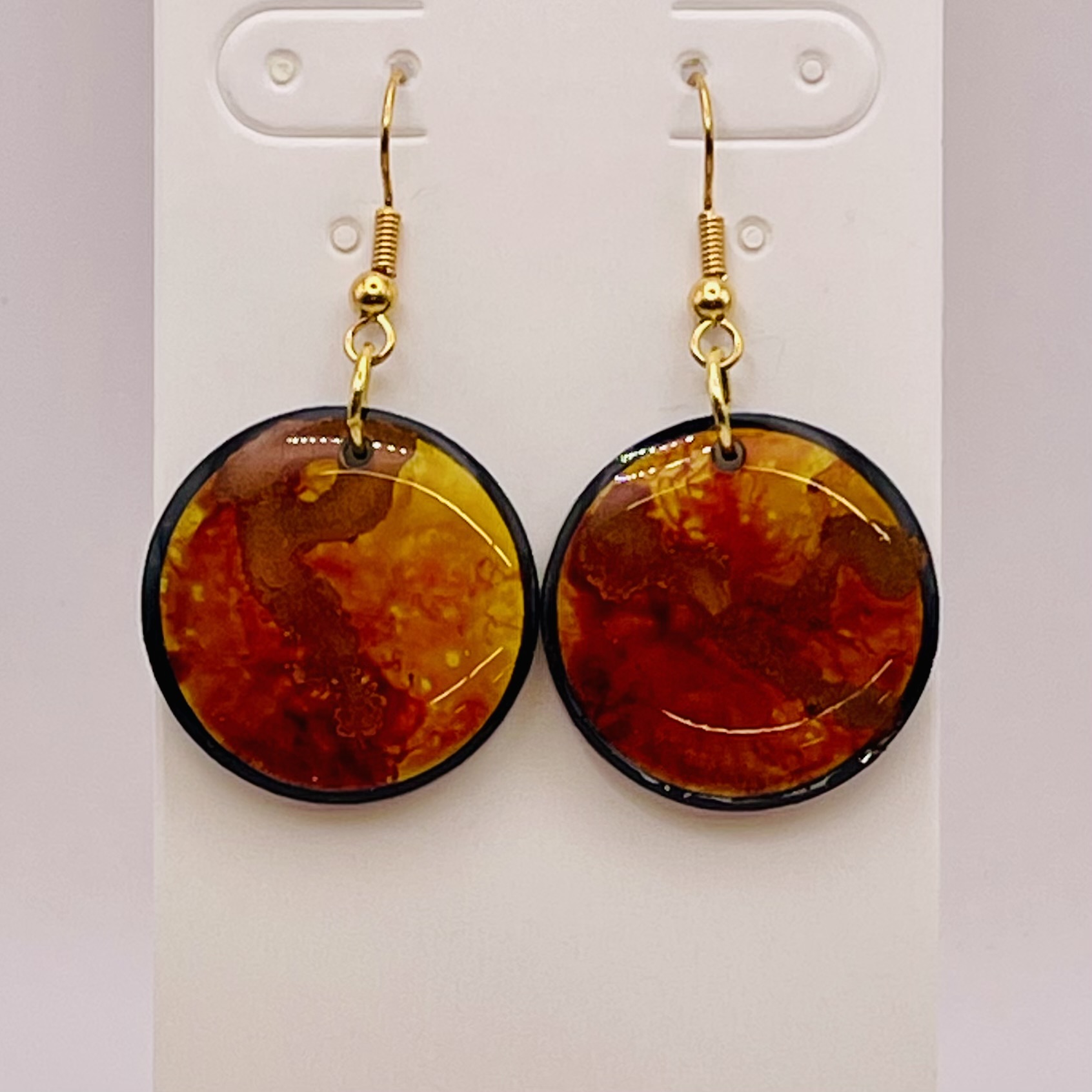 These earrings are handcrafted from 1ā acrylic blanks adorned with vinyl infused with alcohol ink and sealed with resin.Ā