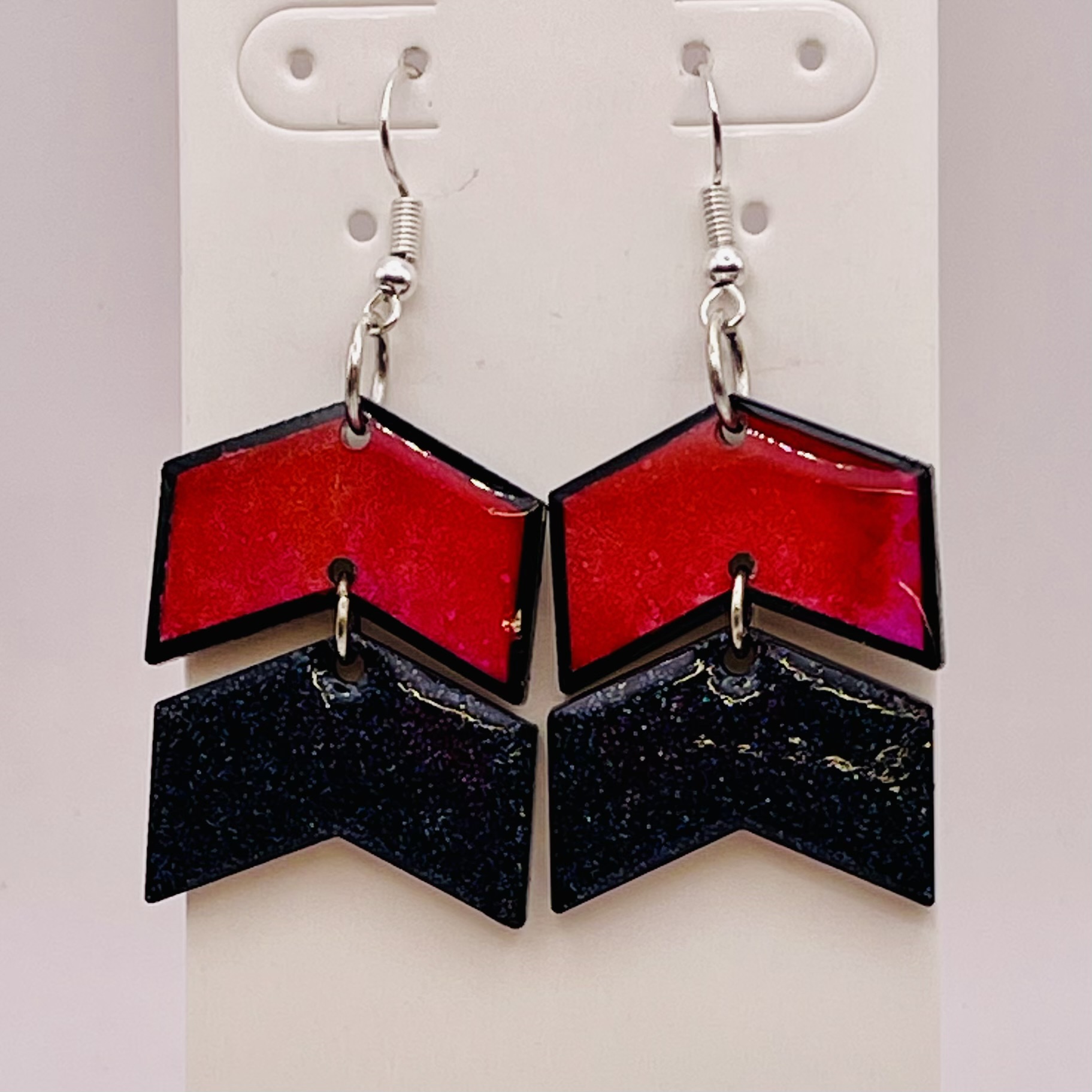 These earrings are handcrafted from two acrylic blanks adorned with vinyl infused with alcohol ink and sealed with resin.