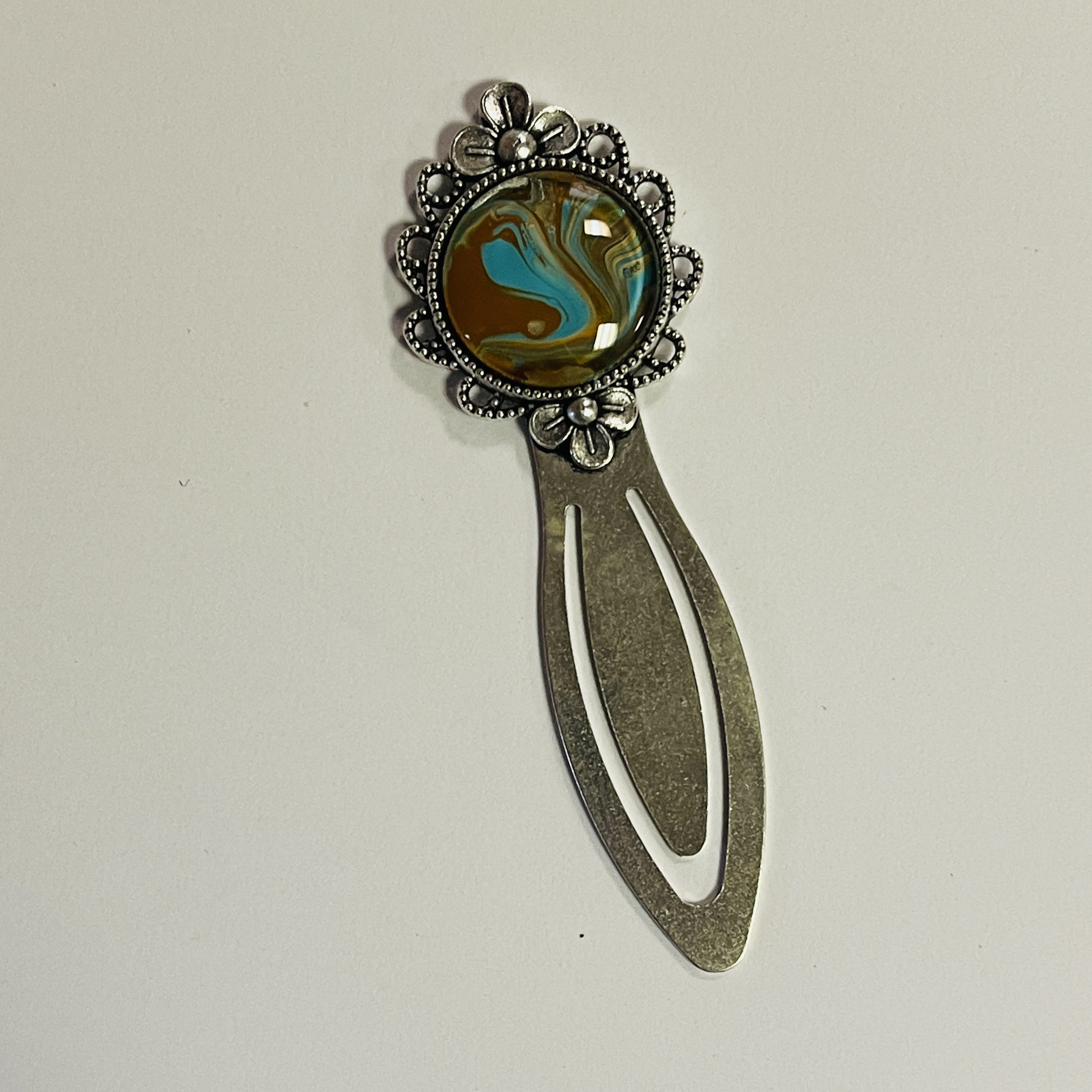 Brown, turquoise, beige paint pour design