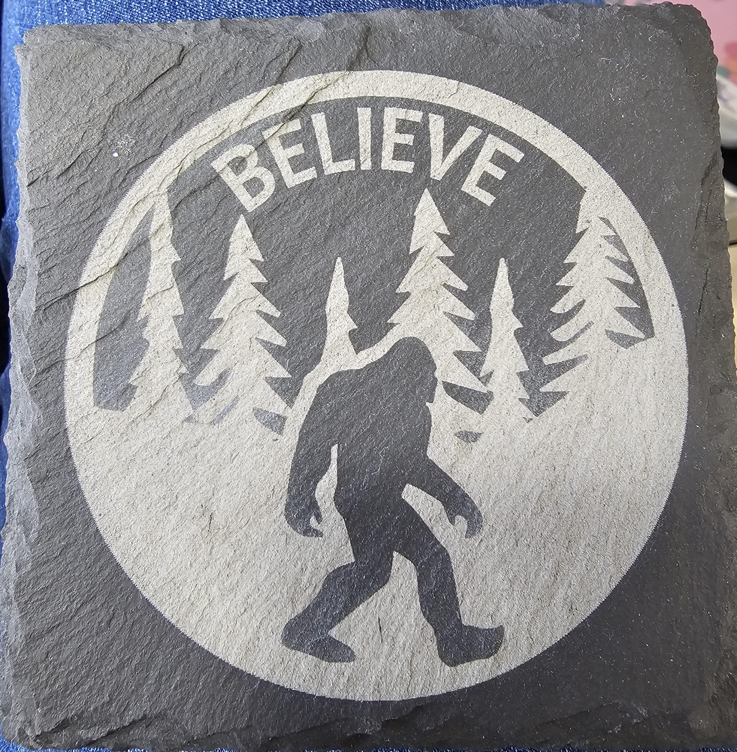 Believe bigfoot Slate Coaster. Laser engraved and forever visible.