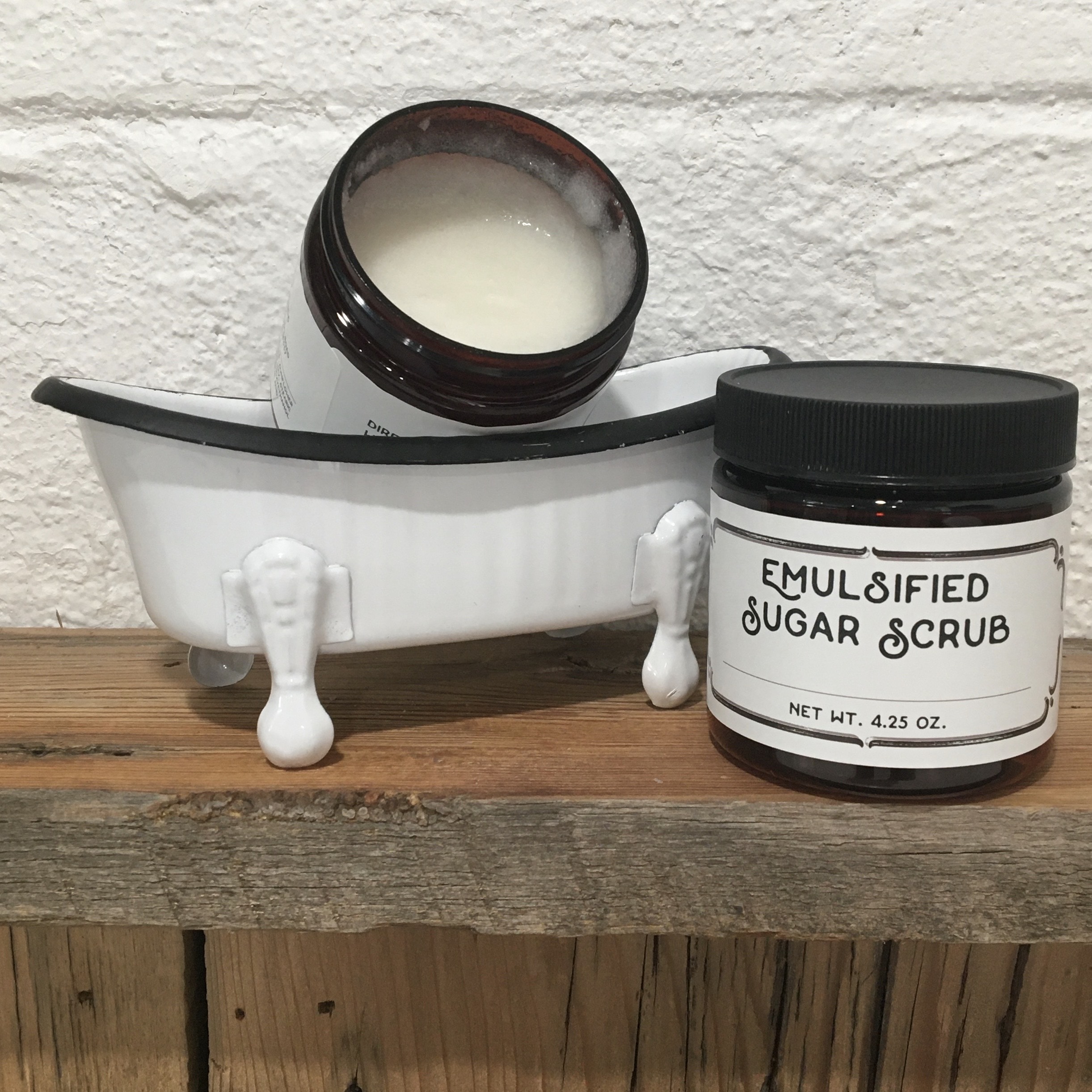 Our handmade Emulsified Sugar Scrubs create a creamy lotion when mixed with water, making it easier to spread and exfoliate while leaving your skin moisturized. Each container contains 4.2 ounces of product.