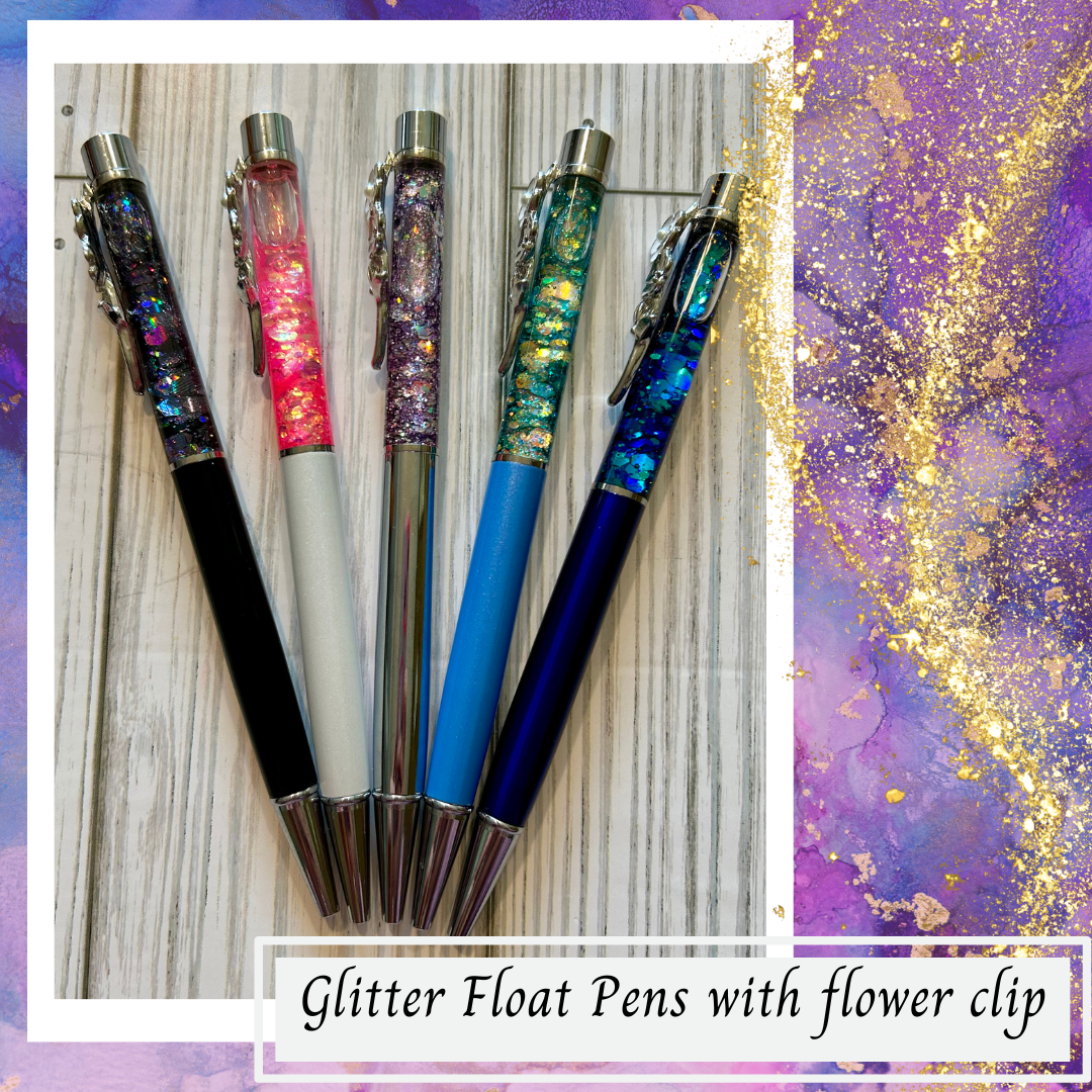 Introducing our Glitter Float Pens with a charming flower clip – the perfect blend of sophistication and sparkle!