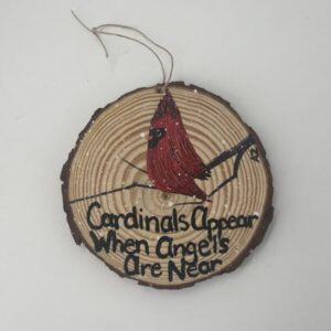 4 inch round hand-painted ornament on wood by Ashlynne (Zankey) Berkebile - memorial cardinal