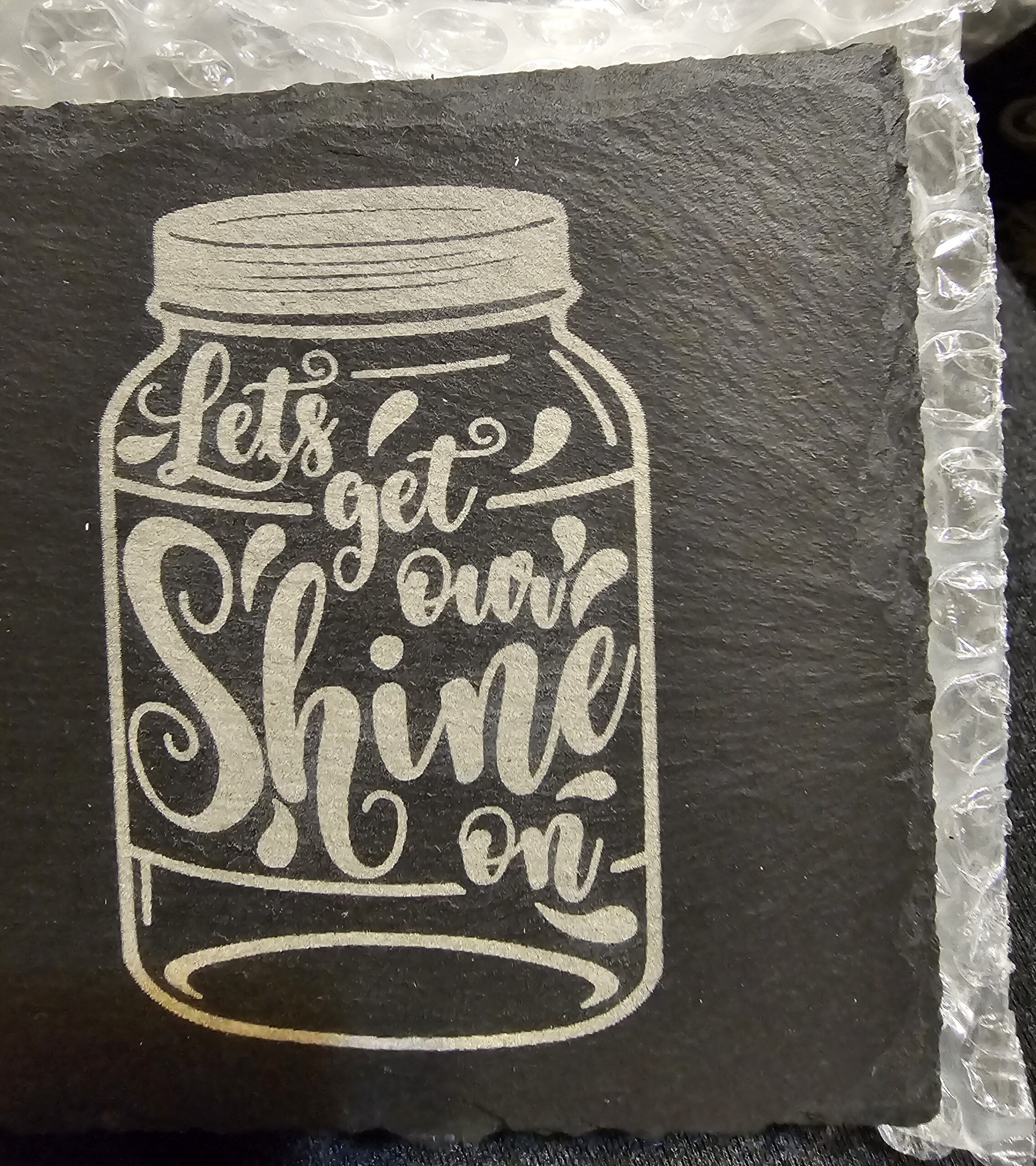 Let’s get our shine on Slate Coaster. Laser engraved and forever visible.