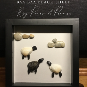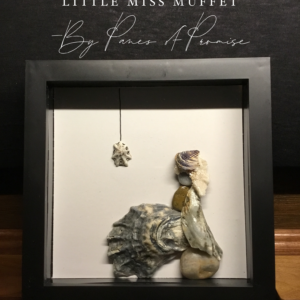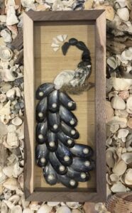 - Shells & pearls make up this particular design in a shadow box frame measuring 7″w x14″h x2″ deep