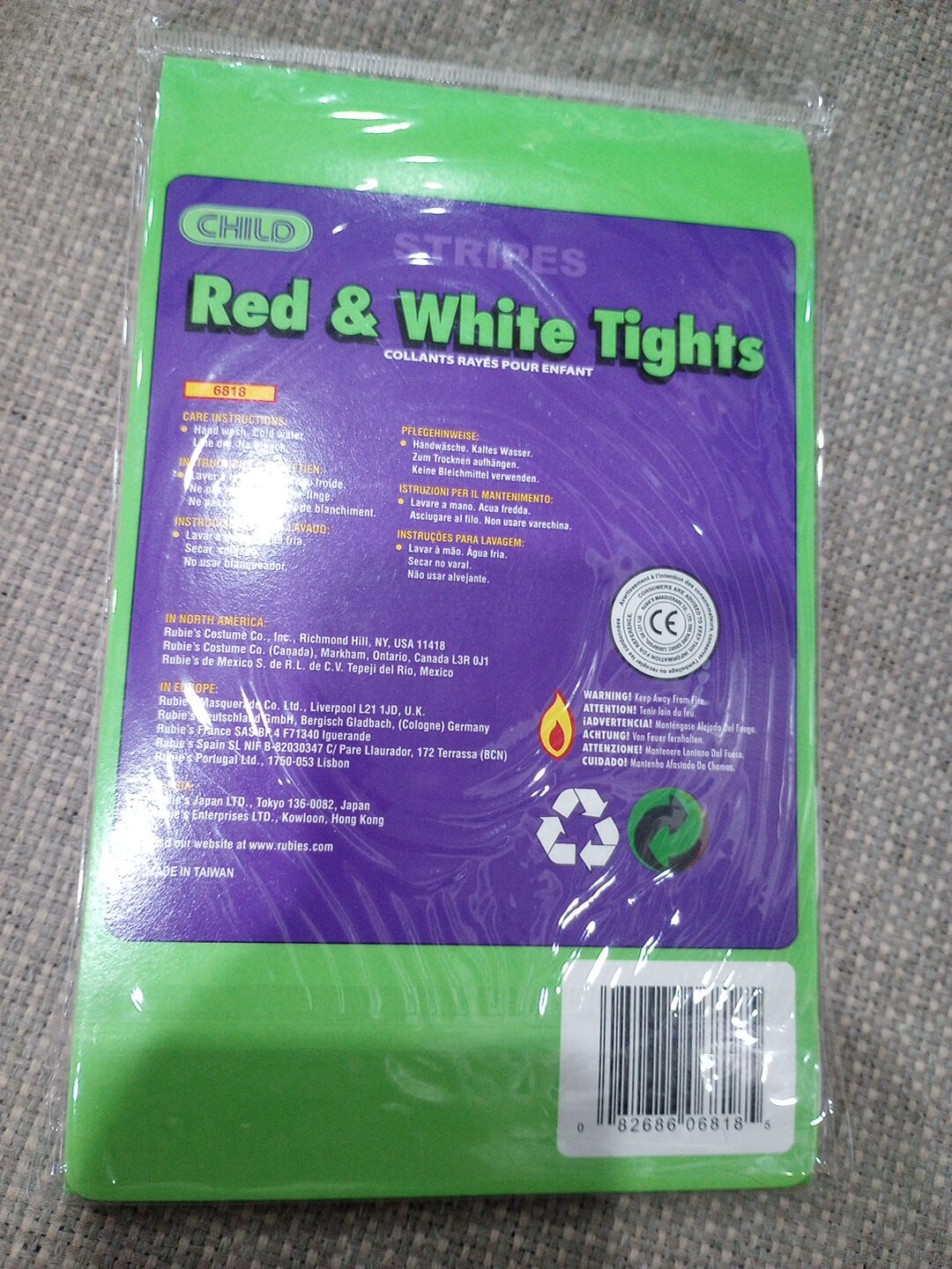 Large striped red and white tights for children.