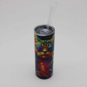 The sunflower tumbler is a vibrant and eye-catching accessory that adds cheer to any beverage experience. Its exterior is adorned with a stunning sunflower. This sunflower features a vivid green center surrounded by delicate petals in shades of yellow, orange and red with blue and purple hues. The tumbler itself is made of food-grade stainless steel and has a 20-ounce capacity. The 18/8 food-grade stainless steel keeps drinks at your desired temperature, making it the perfect choice for indoor and outdoor use. The tumbler boasts a secure lid and a reusable straw, providing convenience and reducing waste. With its combination of functionality and aesthetic appeal, this tumbler is sure to brighten up your day and make every sip a joyful experience.