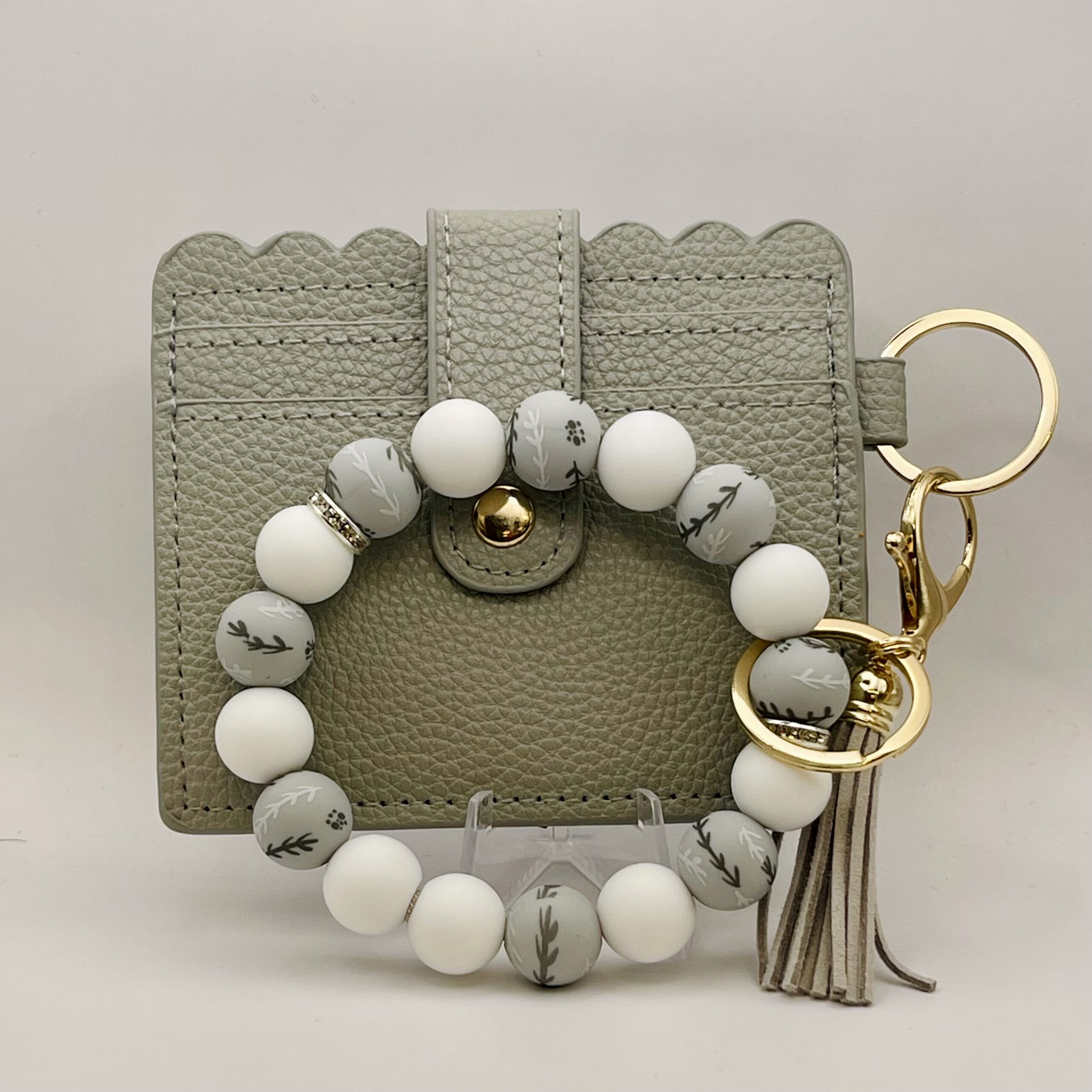 Faux leather wallet with matching wristlet. Handcrafted with silicone beads and rhinestone spacers strung on a strong stainless steel thick wire for added strength and security. Roomy compartments to store your license, credit cards, and some cash. Accented with a tassel. Use each piece individually or together for a coordinated look. Super convenient when you don’t want to take a big purse.